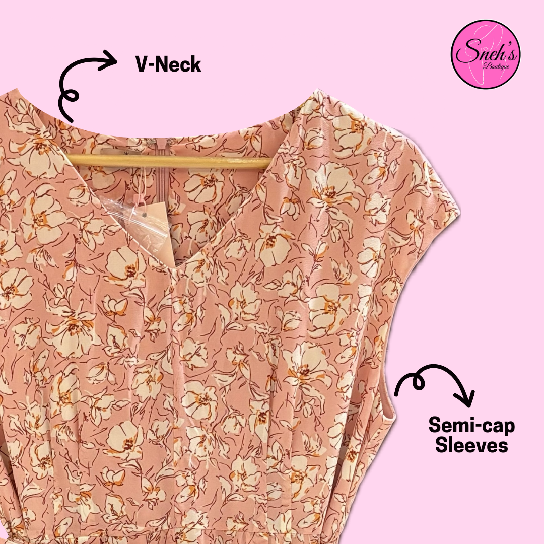 Introducing our elegant Pink Floral Midi Dress, complete with a flattering belt and a convenient back zip. This dress is adorned with a delicate floral pattern that exudes charm and sophistication. Crafted from high-quality fabric, it offers comfort and a perfect fit. Ideal for both formal occasions and casual outings, this dress effortlessly combines timeless style with modern convenience.